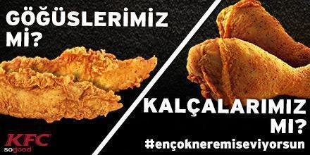 Kızarmış tavuk satıcısı KFC’nin reklamlarında tavuk görselleri üzerine ‘’Göğüslerimiz mi?’’ ve ‘’Kalçalarımız mı?’’ yazarak ‘’En çok neremi seviyorsun?’’ sorusu ile oluşturduğu reklam afişlerinde kadın bedeni cinsel bir obje haline getirilmiştir. Örnekte görüldüğü üzere, görselde kadın bedeni olmasa dahi birtakım soru ve yönlendirmelerle kadın bedeni cinsel bir obje haline getirilmektedir.