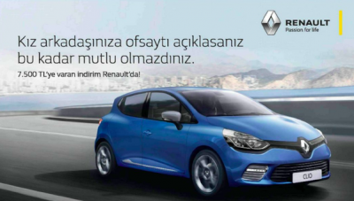 Renault markası, araba fiyatlarına ilişkin indirim kampanyasını ‘’Kız arkadaşınıza ofsaytı açıklasanız bu kadar mutlu olmazdınız.’’ sloganı ile duyurmuştur. Gelen tepkilerin ardından yayından kaldırılan reklamda kadınlar ve futbol konusunda cinsiyetçi bir söylem tercih edilmiş olup, bu söylem üzerinden araba satılmaya çalışılmıştır.